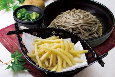 ポテトフライは揚げたてを別盛りで提供するため、冷たい「ざるだし」につけた時の温と冷のギャップを楽しんでいただけます。冷たくしめ、ツルッとしたのど越しのそば(うどん)と、カリカリサクサク食感のポテトフライを一緒にお召し上がりください。