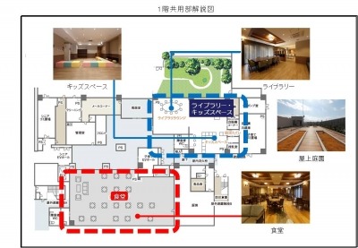 ○共用設備 :食堂、ライブラリー、キッズスペース、屋上庭園