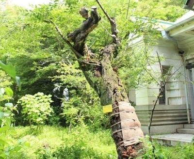 戦後70年をまもなくむかえる衰えた被爆ソメイヨシノ。