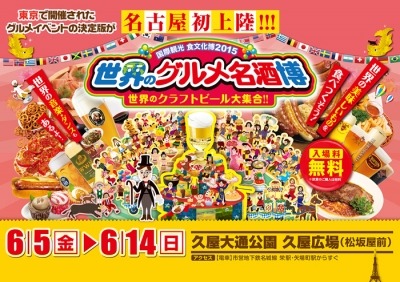 一般社団法人 国際食文化交流会は、2015年4、5月に東京(駒沢公園・東京スカイツリータウン(R))にて開催された、世界中の料理とお酒を一度に楽しめるグルメイベント『国際観光 食文化博 世界のグルメ名酒博2015』を、名古屋市中区栄久屋大通り公園・久屋広場にて、6月5日(金)から6月14日(日)の10日間、開催致します。