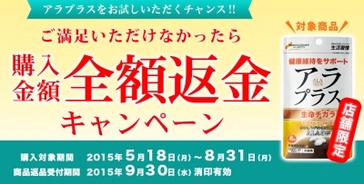 た方々に「アラプラス」をご利用いただき、商品を実感していただけるキャンペーンとなります。