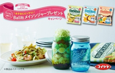 株式会社フレンテの事業会社である株式会社湖池屋(本社:板橋区/社長:田子忠)は、「トルティアチップス スイートチリ&サワークリーム」の発売にあわせ、2015年5月18日(月)から「トルティアチップス アボカドクリームチーズ味」、「トルティアチップス オリジナルソルト」、「トルティアチップス スイートチリ&サワークリーム」の3商品において、『女子会にもピッタリ! Ball社メイソンジャーが当たるキャンペーン』を実施します。