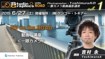 株式会社ケンコー・トキナー(本社:東京都中野区、代表取締役社長:山中 徹)は、株式会社スタジオグラフィックスが運営する撮影セミナー「SG on the ROAD 動画講座< 一眼カメラ >講師:吉村 永 」に協賛するとともに、6月27日(土)の撮影実習とセミナーを、ケンコー・トキナー7Fセミナールームにて開催いたします。