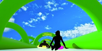 「ビーチハイウェイ」は、全長100メートルのウォータースライダーで、傾斜は緩やかですが、流水に乗って勢いよく滑り降りてくるスピードとスリルを、子供から大人まで幅広い年齢層に楽しんでいただける遊具です。