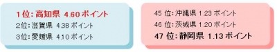 ※3:Q1~5の都道府県ごとのランキングを1位47ポイント、2位46ポイント3位45ポイント…47位1ポイントで計算。Q1、Q2はポイントを3倍、Q3はポイントを2倍とし、Q1~5を合算。最大は470ポイント。