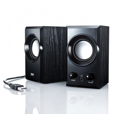 「MM-SPU7BK」は、木製キャビネットにパッシブラジエーターを搭載したUSBスピーカーです。