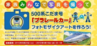 キャンペーンの特設サイトにプラレールカーと一緒に撮った写真を投稿すると、素敵なプレゼントがもらえる他、投稿された写真がモザイクアートになり、2015年8月の最終運転日に向けたイベントに使用されます。