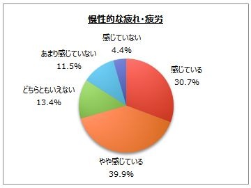 ■普段、慢性的に疲れを感じている人は7割。「身体的な疲労」が3割強、「精神的な疲労」が2割強、「どちらも同じぐらい」が4割弱