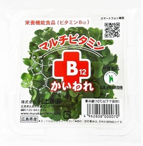 株式会社村上農園(本社:広島市、代表取締役社長:村上清貴)は、今年4月の食品表示制度の変更に伴い、ビタミンB12を含有した野菜「マルチビタミンB12かいわれ」を、「栄養機能食品」として6月15日より発売します。