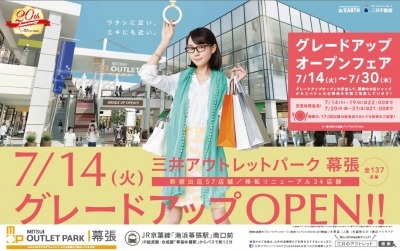 三井不動産商業マネジメント株式会社(東京都中央区)が運営する「三井アウトレットパーク 幕張」(千葉県千葉市)は、2015年7月14日(火)にグレードアップオープンいたします。
