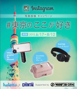 株式会社CHINTAI (本社:東京都港区、代表取締役会長兼社長:佐藤茂、以下CHINTAI )が運営するキュレーションメディア「haletto」(以下ハレット)は、写真投稿アプリInstagramを利用した「#東京のここが好き」写真投稿キャンペーンを2015年6月17日から2015年8月12日に実施いたします。