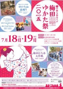 梅田地区エリアマネジメント実践連絡会(※1)を中心とする梅田ゆかた祭2015実行委員会(※2)は、「環境共生」と「日本の伝統文化」をテーマとして、「~小粋な街あそび~梅田ゆかた祭2015」を開催致します。