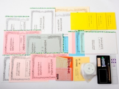 (1)教材内容 : 学習の手引き / テキスト /その他(作例集・添削課題集・賞状本用紙など) / DVD9枚