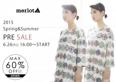 6月26日(金)16時より、株式会社イチオクが展開するファッションブランドmerlot(メルロー)公式通販サイトにて2015年S/S商品のプレセールを「送料無料&最大60%OFF」にて開催致します。