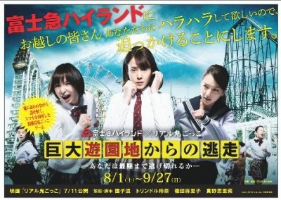 富士急ハイランド(山梨県富士吉田市)は、トリンドル玲奈、篠田麻里子、真野恵里菜がトリプル主演を務める映画『リアル鬼ごっこ』(2015年7月11日公開/(C)2015「リアル鬼ごっこ」学級委員会)とタイアップし、8月1日(土)~9月27日(日)の26日間、富士急ハイランドの園内全域を舞台としたリアル謎解きおにごっこ『巨大遊園地からの逃走-あなたは最後まで逃げ切れるか-』を実施致します。