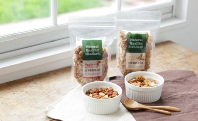 今回、同ブランドの新シリーズとして「アップルシナモン味」と「フルーツミックス味」のグラノーラを7月7日に発売。数種類の穀物やフルーツ、ナッツからなるグラノーラは、噛みごたえのあるごろっとしたシリアルが特徴で、良質な炭水化物と良質な油、ミネラル・ビタミンが一度に摂ることができます。