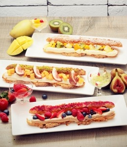 ザクザクとしたシューの食感に、フルーツのジューシー感とフレーバークリームのとろ~りリッチな味わいが一緒に楽しめる“新感覚スイーツ”に仕上がりました。