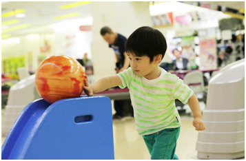 ディノスボウルでは、14cmからのキッズ用シューズや5つ穴のキッズ専用ボール、ガターにならないバンパーレーン、重いボールを持てないお子様でも押し出すだけで投球できる補助スロープといったキッズ&ジュニア向けのツール・設備を全店に導入しています。