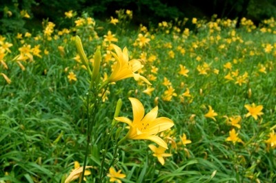 高原にさわやかな夏を呼ぶ花として人気が高いニッコウキスゲ。関西に自生地がなく、6月には亜高山帯タイプが開花しておりましたが、現在高原タイプ約2,000株の群落が咲き、まもなく見頃を迎えます。今年は昨年に比べ花付きがよく、より鮮やかな景色をお楽しみいただける見込みです。