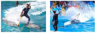 夏の限定パフォーマンスとしてイルカパフォーマンスでは、トレーナーが2頭のイルカの背に乗り、プールを駆け巡る 「ローマンライド」を実施。また、シャチパフォーマンスでは、客席スタンドに向け、豪快に水しぶきを浴びせかける“サマースプラッシュ”を開催。シャチが泳ぎながら次々と客席に水しぶきをかけていく「スイミングバースト」に加え、逆立ちの状態から、幅1.5メートルもある大きな尾ビレで客席を狙い撃ちする大迫力の「テールバースト」が実施されます。この夏、想像を超える爽快かつ豪快なパフォーマンスをお楽しみ頂けます。