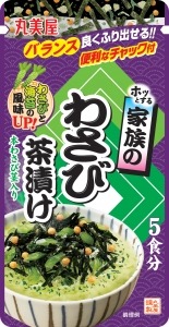 丸美屋食品工業株式会社(本社:東京都杉並区、社長:阿部豊太郎)では、お好みの量が調節できる大袋タイプで好評の「家族のお茶漬け」シリーズより、「家族のわさび茶漬け」を2015年8月20日(木)からリニューアル発売いたします。わさび好きがより満足できるわさび茶漬けで、市場を盛り上げます。