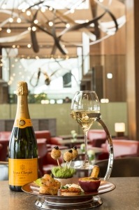 アペリティフ(食前酒)と、グルマン(美食家)2つの言葉を組み合わせたメニュー「アペリティフ グルマン」は、夏にぴったりの冷えたシャンパーニュ ヴ―ヴ・クリコと、五感で楽しむ4種類のアペタイザーをご堪能いただけるセットです。こちらのお料理は音楽の生演奏が心地よい空間を演出するアンダーズ タヴァン ラウンジ&バーでお楽しみいただけます。