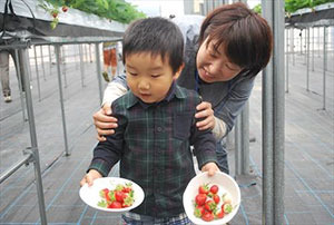 イチゴを摘み取り、その場で食べられます。実際に、イチゴを栽培しているところが見られるため、お子様の食育にもおすすめです。