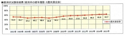 6歳未満の子どもの使用率は66%と昨年(64%)より2ポイントアップしました。ところが「ク