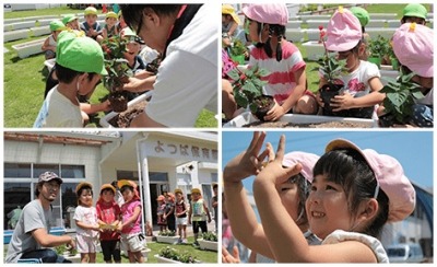今年はよつば保育園から福島県内の福祉協議会にご協力を依頼し、南相馬市内の中高生にもボランティアとして参加してもらうことになりました。同じ南相馬市に暮らす中高生と園児が一緒に楽しみながら花を植えるという夏休みの体験が、この地域の明るい未来へと繋がることを信じております。