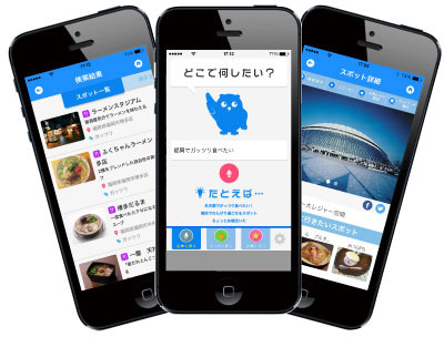 当アプリは、行きたいエリアとその日の気分やしたいことを音声検索していただくと、最適なおでかけ先をご提案する新しい旅行アプリです。また多くの方に検索いただくことでユーザーの発話をビッグデータとして集め、おでかけのトレンドを機械学習し時流にあったご提案をする進化していくサービスです。