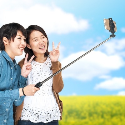 本製品は、スマートフォンをセットして自撮りや三脚での撮影に使用できるセルカ棒です。スマートフォンを付属のホルダーに挟んでセットすれば、自撮り棒として使用することができます。スマートフォンで片手を伸ばして撮影する場合、顔が大きく写ったり背景がきれいに入らないなど偏った撮影になる場合があります。しかし本製品を使用すれば最長約108cm離して撮影可能で、まるで人に撮影してもらったような自然な仕上がりでセルフ撮影を楽しむことができます。