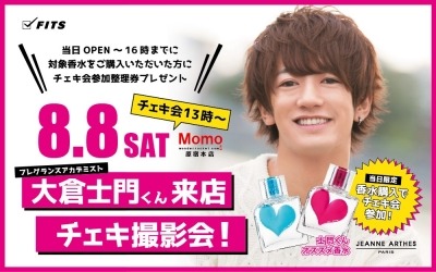2015年8月8日(土)原宿竹下通りのMomo WONDER ROCKET原宿本店にて雑誌・TVで大活躍中の人気モデル「大倉士門くん」がフレグランスアカデミストとして初の香水イベントを開催致します。