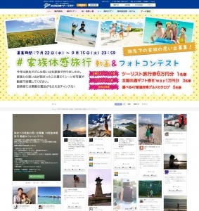 これは、夏休みの期間に当社ホームページの「 #大人体感旅行 動画&フォトコンテスト」および「 #家族体感旅行 動画&フォトコンテスト」キャンペーンページにて、TwitterやInstagramのSNSユーザーから、旅先で体感したシーンの写真や動画を募集し、当社による選考や「いいね」+「シェア」数を基準に順位を決定し、上位の方に旅行券などの景品が当たるコンテストです。