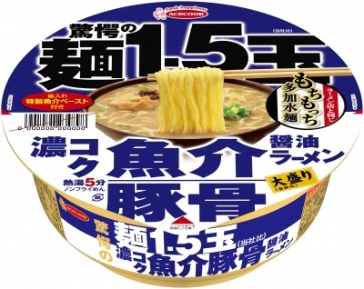 エースコック株式会社(本社:大阪府吹田市 社長:村岡寛)では、「驚愕の麺1.5玉 濃コク魚介豚骨醤油ラーメン」を新発売させて頂く運びとなりましたので、ご案内申し上げます。