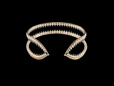 このコレクションには、鋭い牙を持つサメの顎をデザインモチーフに、広い海で生きるサメの野性的で危険を秘めた美しさを表現した「gulper(ガルパー)」をはじめ、様々なシリーズがラインナップ。太古の記憶を留めたかのような原始的で神秘的な貝殻のフォルムを構築的なデザインで描いた「turban shell(ターバン シェル)」。波のようなラインを描く貝殻を優美で開放感のあるフォルムに仕上げた「ruffle shell(ラッフル シェル)」。オーガニックなフォルムの色鮮やかな美しい珊瑚をモチーフとした「coral(コーラル)」。植物の陰に潜む蝶やカマキリを表現した「mimic butterfly(ミミック バタフライ)」や「mimic mantis(ミミック マンティス)」・・・。