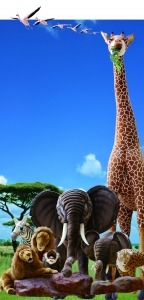 祝祭広場をサファリランドに見立て、ほぼ実物大のリアルなぬいぐるみで