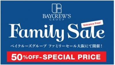 ベイクルーズ グループ 株式会社ベイクルーズ(本社:渋谷区神南1-5-6、代表取締役CEO:杉村 茂)は、8月20日(木)~8月23日(日)の3日間、LUCUA OSAKA 9F のLUCUA HALL(大阪府大阪市北区梅田3-1-3 9F)にてファミリーセールを実施いたします。
