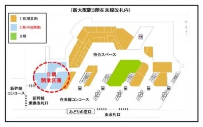 株式会社ジェイアール西日本デイリーサービスネット(社長:柴田信、本社:兵庫県尼崎市)は、JR西日本エリアの改札内としては最大規模となる商業施設「エキマルシェ新大阪」のII期店舗の開業日を決定いたしました。今回のII期開業は新幹線改札に近い場所で、新幹線乗換のお客様ニーズに応えられる下記の2店舗を開業いたします。