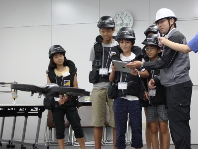 当日は近未来の大規模イベントを意識し、「人とITを融合した未来のセキュリティ」をテーマに、新型警備ロボット「Reborg-X」(リボーグエックス)や無人飛行ロボット(ドローン)を活用した最新警備のデモをはじめ、今回初実施となるウェアラブルデバイスを利用した未来のセキュリティ体験を行いました。さらにAEDの操作や防災講習などの命を守るための学習を行い、一日をつうじて社会の安全安心をまもる仕組みについて学びました。