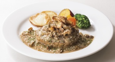 ふっくらと焼き上げたハンバーグに、マッシュルームやエリンギ、しいたけ、ポルチーニなどきのこの旨味が凝縮したクリーミーなソースをたっぷりとかけました。
