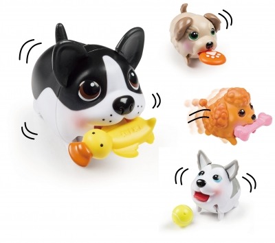 『チャビーパピーズ』は、丸くて可愛らしいパピーのペットトイシリーズです。両足をそろえて一目散に駆け寄ってきたり、身体を左右に揺らしながら夢中になって走り回るなど、足の動きを切りかえる事でいろいろな走り方をしてくれます。さらにそれぞれのパピーが大好きなお気にいりグッズもいっしょについてきます。お気に入りのおもちゃをお口にくわえれば、思わず抱きしめたくなるほどの愛らしさです。