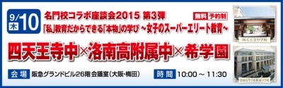 昨年度大変ご好評をいただきました「名門校コラボ座談会」の2015年度第3弾といたしまして、≪四天王寺中×洛南高附属中×希学園≫を実施いたします。