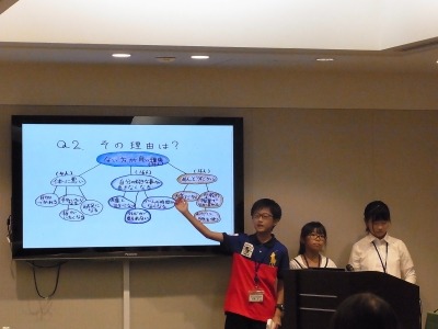 審査員一致でプレゼンテーションのレベルが高かった。データを自分でとって、それを分析していたことが、高い説得力を持たせていた。また、各国の事情もきちんと調べることができており、非常に短い時間の中でも、ドキュメンタリーを見ているような感覚があった。小学生にこんな事ができるのか!と感激するようなレベルの高さでした。
