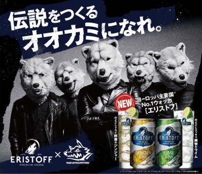 エリストフは、1806年、「オオカミの地」と呼ばれたジョージアを拠点として繁栄した貴族“エリストフ家”によって誕生した歴史あるウォッカで、クリアでスムースな味わいが特徴のヨーロッパ主要国No.1ウォッカです。「伝説をつくるオオカミになれ」のブランドコンセプトを掲げ、そのコンセプトを体現するアンバサダーとして、頭はオオカミ、身体は人間という外見を持つ、究極の生命体5人で結成された実力派ロックバンド「MAN WITH A MISSION」の起用を決定し、9月1日(火)よりブランドサイトをリニューアルオープンします。(http://www.bacardijapan.jp/brand/rtd/eristoff/)