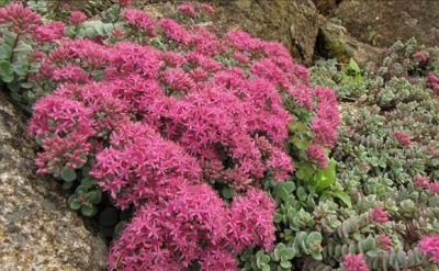 北海道(日高・十勝・釧路)に分布する多年草です。葉は、多肉質で青みがかり、花色は濃桃色でとても華やかな花です。高さは、10~15cm。現在は、絶滅危惧種となっている希少な植物です。「ヒダカ」は地名を表し、「ミセバヤ」とはこの美しい花を見せてあげたい、君に見せばや…の意味で、この花の優美さを讃えたことから付いた名といわれています。