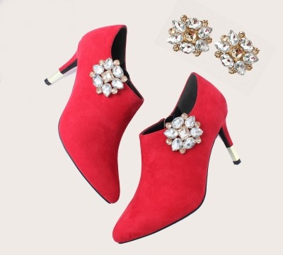ビジュー、ファー、リボン、アンクルストラップなど15種類以上のシューズアクセサリーを取り扱う。