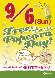 「French cafe&wine 虎ノ門バール」「GRILL & WINE GENIE’S TOKYO」など話題の飲食店を運営する株式会社FSプランニング(本社:東京都港区、代表取締役:古原岳志、以下当社)は、全米No.1ポップコーンブランド「Doc Popcorn(ドックポップコーン)」にて、「フリーポップコーンデー」を2015年9月6日(日)に開催いたします。