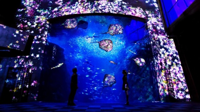 夜の新江ノ島水族館(神奈川/藤沢市)で好評開催中の、夜の水族館をデジタルアート空間にする「えのすい×チームラボ ナイトワンダーアクアリウム2015」の来場者が、8月28日(金)に15万人を達成しました。大水槽に花々が咲き渡るインタラクティブなデジタルアート作品「花と魚- 相模湾大水槽」や、「呼応する球体と夜の魚たち」、「呼応する小さな海 」、「チームラボカメラ」、「お絵かき水族館」を展示しています。会期は、2015年12月25日(金)まで。