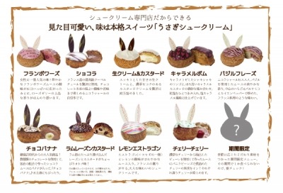 その生地を使って作られたうさぎシュークリームの種類が、