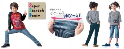 この秋、「スーパーストレッチデニム」で、お子様のオシャレを完成させてください。